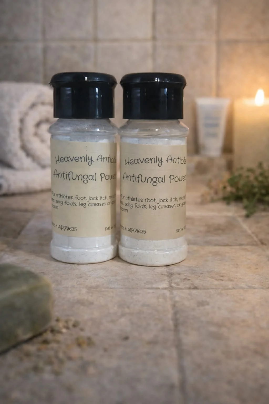 A mixture of herbs to combat jock itch, foot fungus, foul smelling feet, yeast under breast and in skin folds. This powder dries up those moist areas under breasts, and in skin folds.