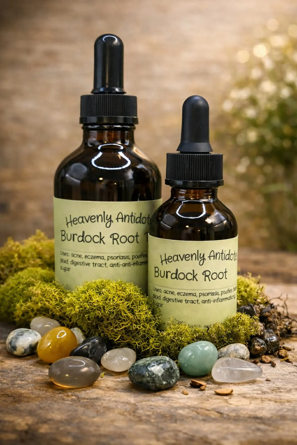 Made with fresh burdock roots and 80-100 proof alcohol. Infused for for 8+ weeks in a cool dark place in a sealed glass jar.