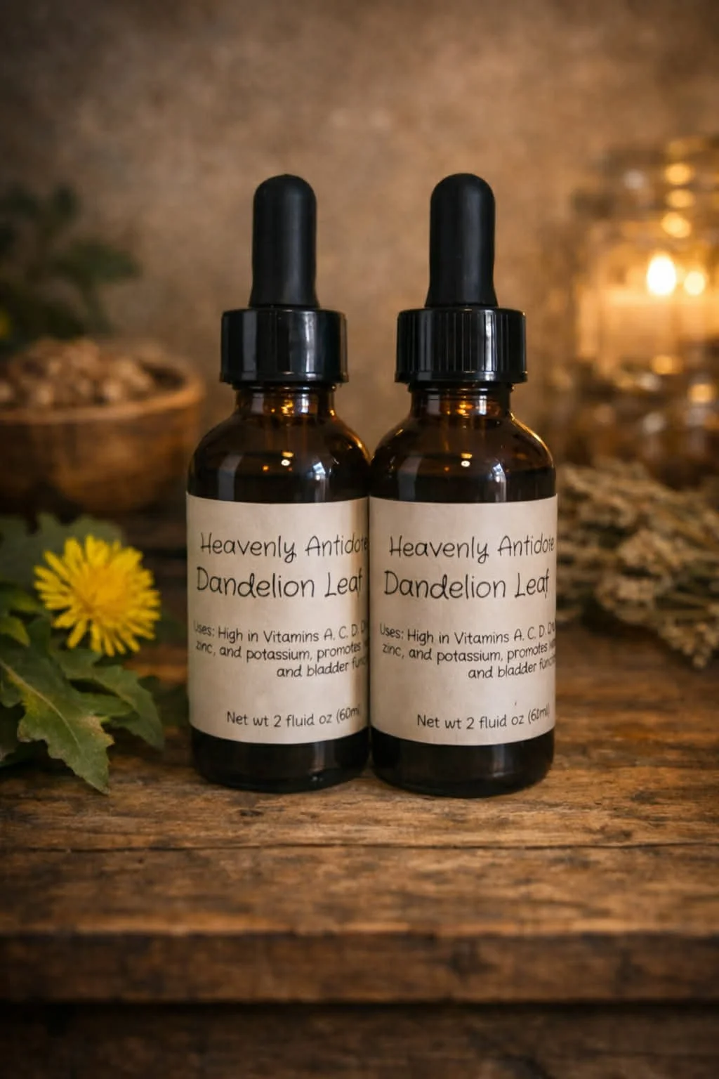 wild crafted locally. Fresh plant matter infused in alcohol for 6-8 weeks. Dandelion leaf has many benefits like High in vitamins A, C, D and B complex, iron, zinc and potassium. Promotes healthy liver, kidney an bladder function. Digestive aid